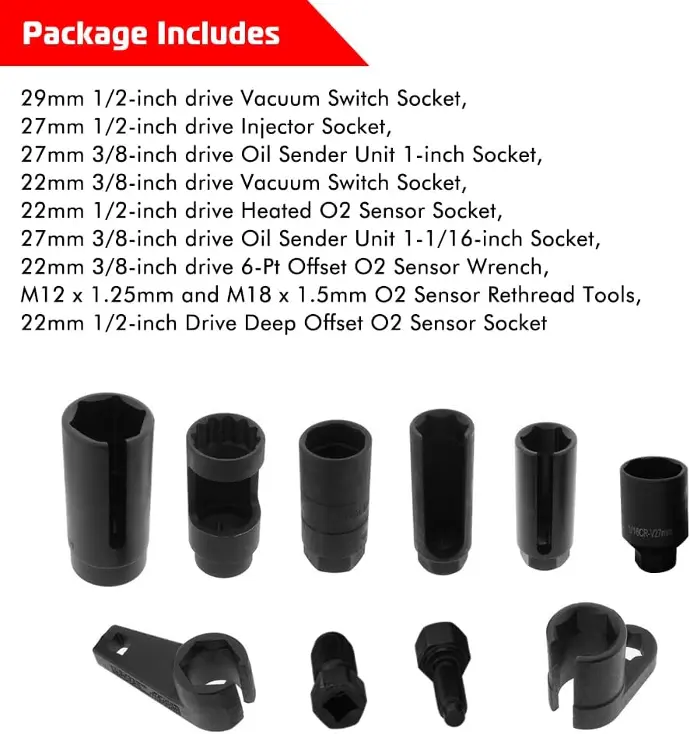 【USE】 Built for use with 3/8” ratchets, 1” wrenches, and breakers bars to remove and install oxygen sensors and hex vacuum switches on vehicle, even if you don't have a lot of experience working with cars. This high quality tool can save your time!
