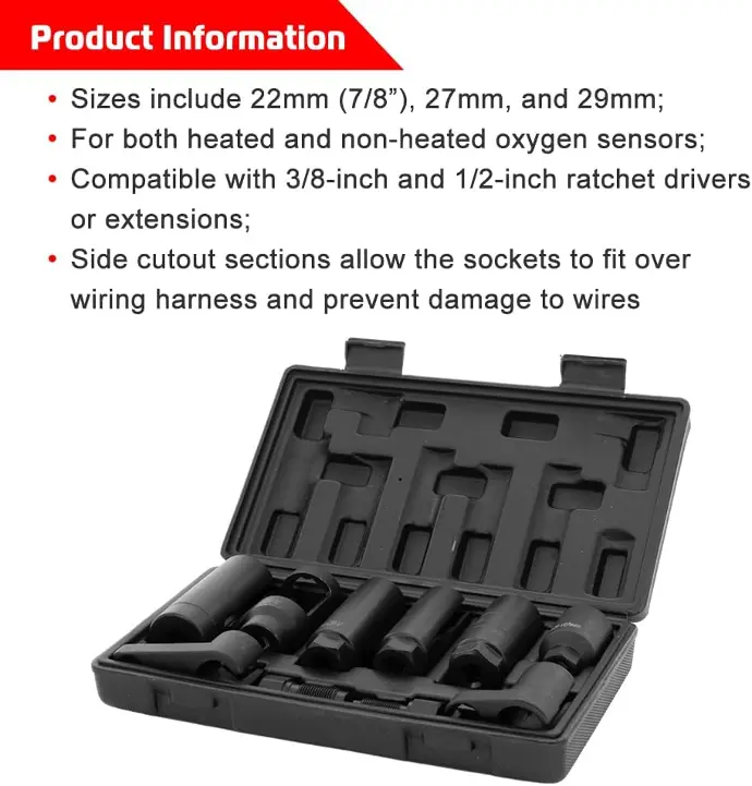 【Size】 7mm slot, 7/8” (22mm) x 6-point x 3-1/10” (80mm) length, 3/8 inch square drive for use with ratchet. Fits all standard oxygen sensors with a 7/8” hexagon nut.